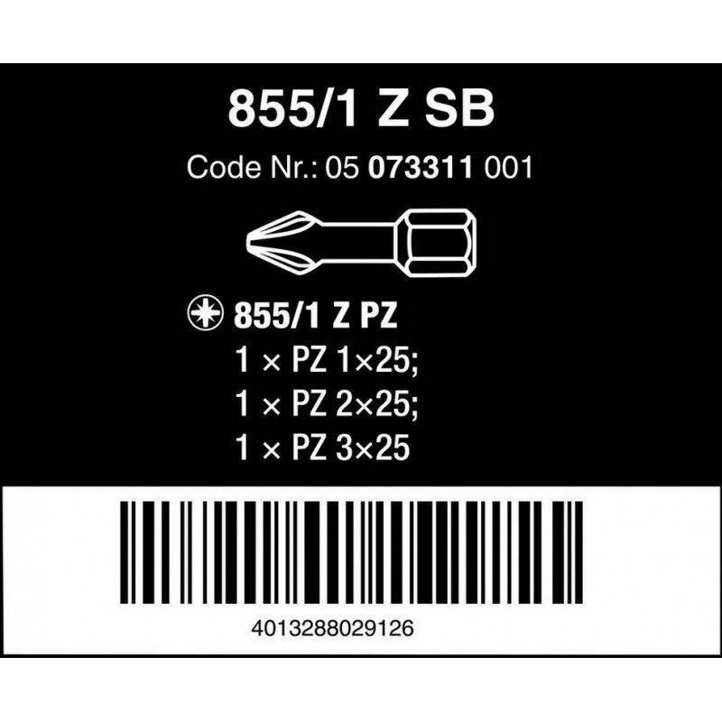 Wera 855/1Z Pozidriv Bits PZ1-3 Set 05073311001 yüksek kaliteli sertleştirilmiş malzemeden üretilmiştir. Genel kullanım için dizayn edilen Wera 855/1Z Pozidriv Bits PZ1-3 Set 05073311001 pozidriv bits uçlar, vida sıkma işleminde başlangıçta vidayı sıyırma problemini azaltmaya yönelik tasarlanmıştır. Wera 855/1Z Pozidriv Set 05073311001'inde 3 adet bits bulunmaktadır. Pozidriv bits uçlar pozidriv başlı vidalar içindir. Kalite ve profesyonel çözümler Alman Markası Wera'da.