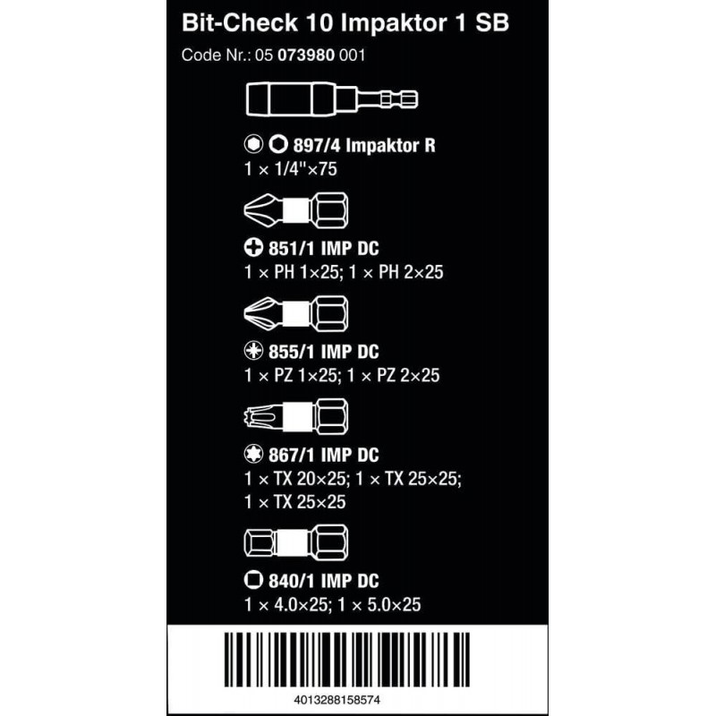 Wera Bit-Check 10 SB Impaktor 1 Bits Seti 05073980001