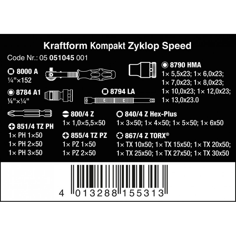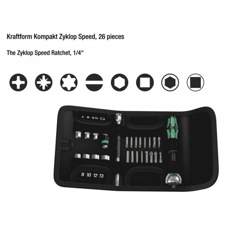 Wera Zyklop Speed KF Kompakt 1/4" Cırcır Lokma Bits Seti 26P 05051045001